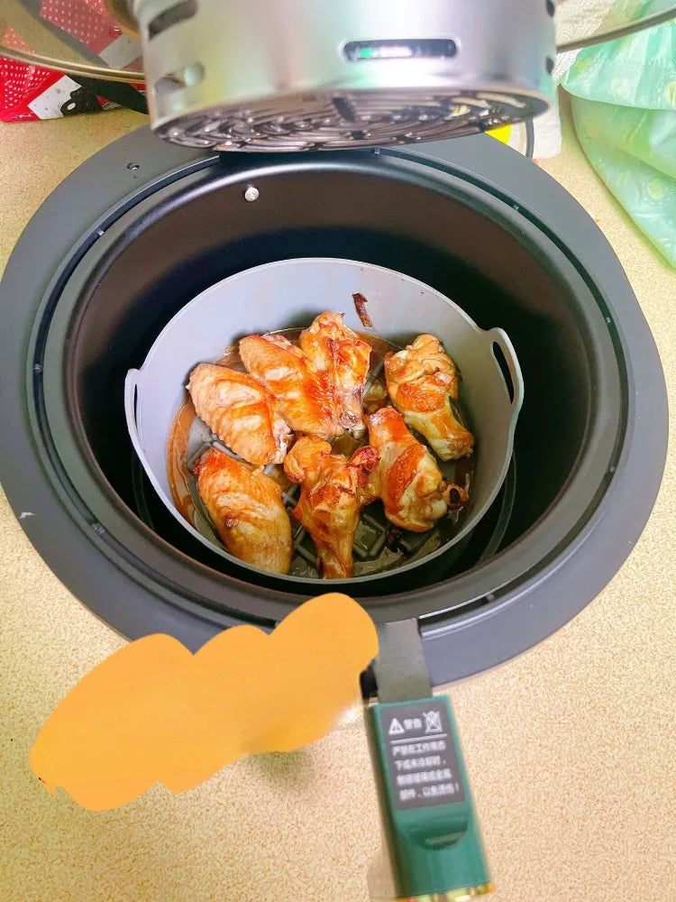 Make air frying cleaner, easier, and more convenient with this food-grade silicone air fryer pot, designed as a reusable replacement for disposable parchment paper liners. Say goodbye to messy baskets and time-consuming cleanup after cooking.